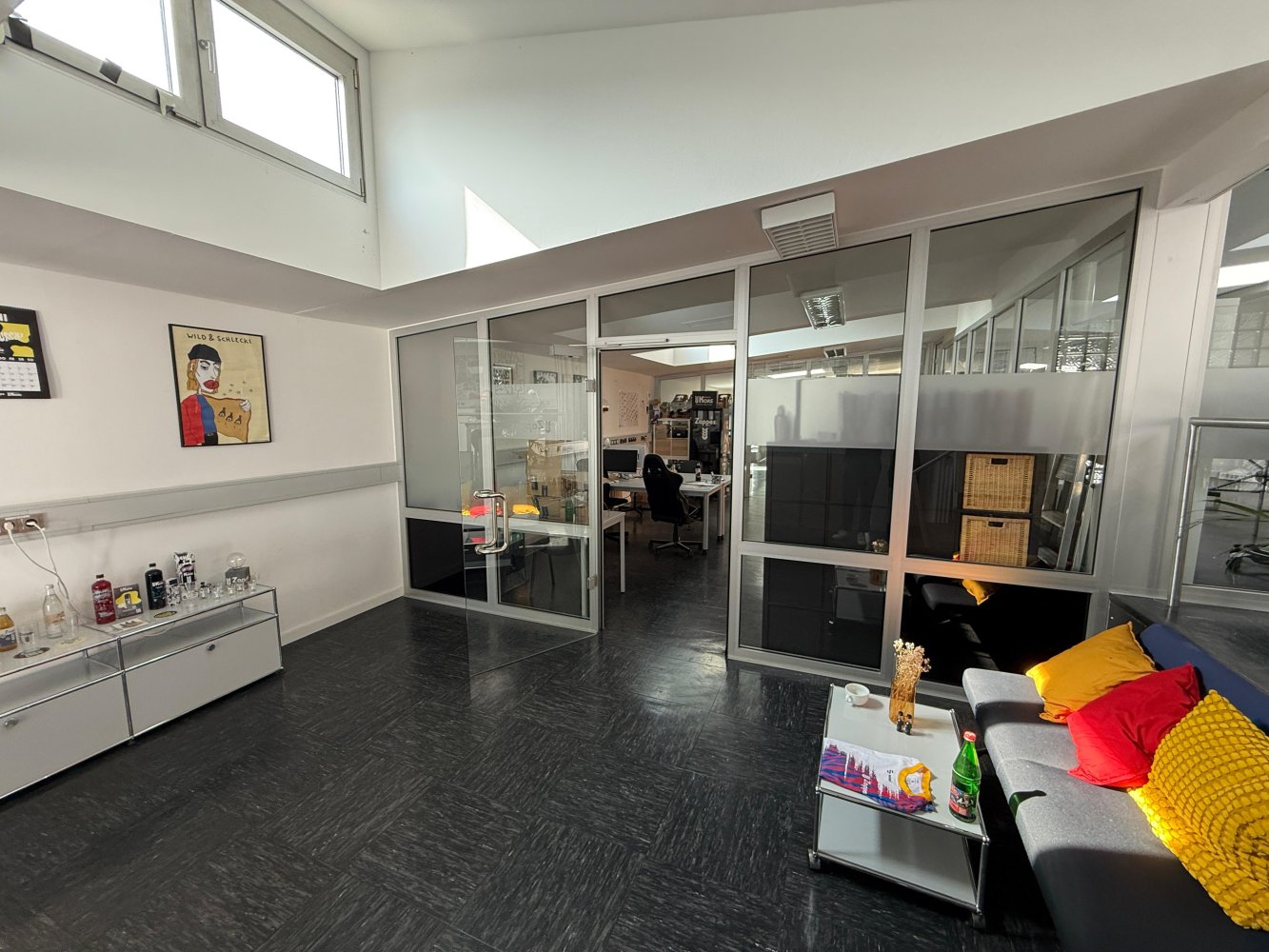 Diese ca. 400 m² große Gewerbefläche befindet sich in einer ehemaligen Druckerei und überzeugt durch ihren offenen, industriellen Charakter. Zuletzt wurde die Fläche von einer Agentur genutzt, die das Raumkonzept bereits in vielfältiger Weise bespielt hat. Die großzügige Open-Space-Struktur bietet zahlreiche Möglichkeiten zur individuellen Arbeitsplatzgestaltung – von klassischen Desk-Zonen über kreative Teamarbeitsplätze bis hin zu kommunikativen Lounge-Bereichen.