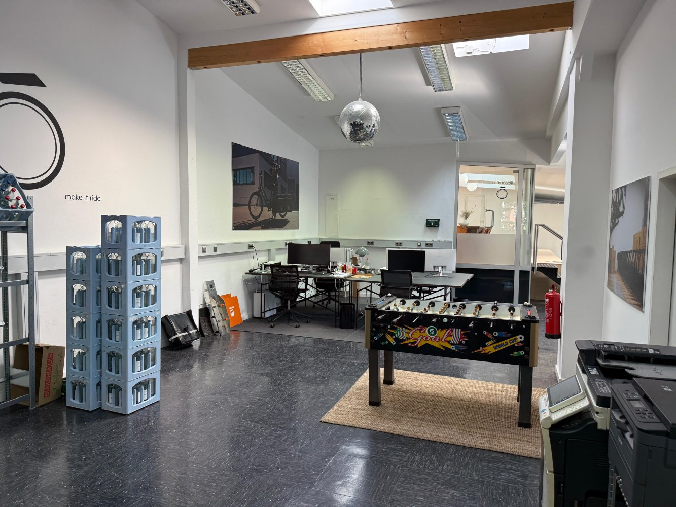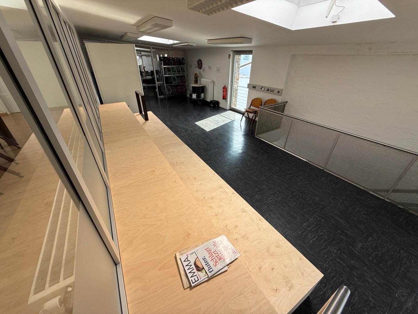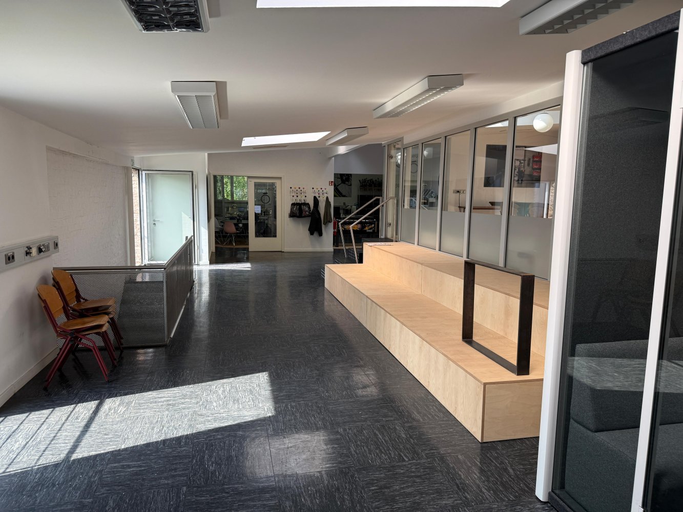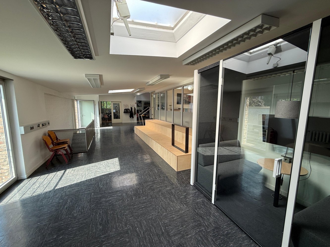 Die Kombination aus industrieller Substanz, flexibler Nutzbarkeit und großzügigem Gemeinschaftsbereich macht diese Fläche ideal für moderne Arbeitsformen, kreative Teams und Unternehmen, die Wert auf Austausch und Wohlfühlklima legen.