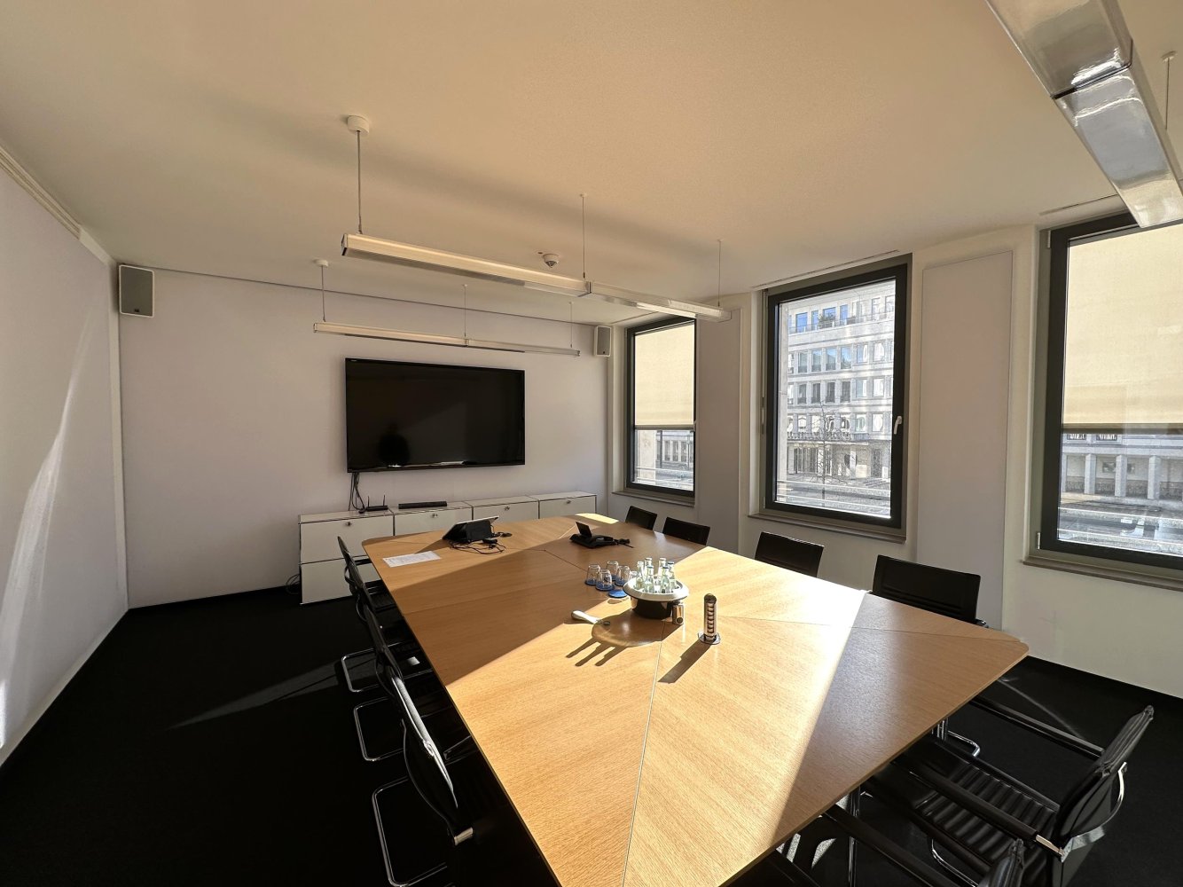 Die Ausstattung umfasst hochwertige Teppichböden in den Büroräumen, Parkett in den Allgemeinflächen, glatte weiße Wände, Glastüren sowie eine moderne Kühlung. Durch die derzeitige Großraumstruktur eignet sich die Fläche besonders für kommunikative Unternehmen, die Wert auf offene Arbeitswelten legen. Eine flexible Aufteilung in einzelne Büros ist aufgrund des funktionalen Grundrisses jedoch ebenfalls problemlos möglich.