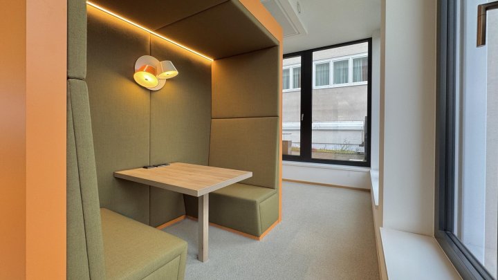 Ein Balkon lädt zum Entspannen oder Meetings im Freien ein und bietet einen schönen Ausblick auf die Umgebung. Die Räumlichkeiten sind hell und freundlich gestaltet und bieten genügend Platz für Arbeitsplätze, Besprechungsräume und Aufenthaltsbereiche. Nach Absprache besteht auch die Möglichkeit, die Büromöbel während der Mietvertragslaufzeit zu nutzen.