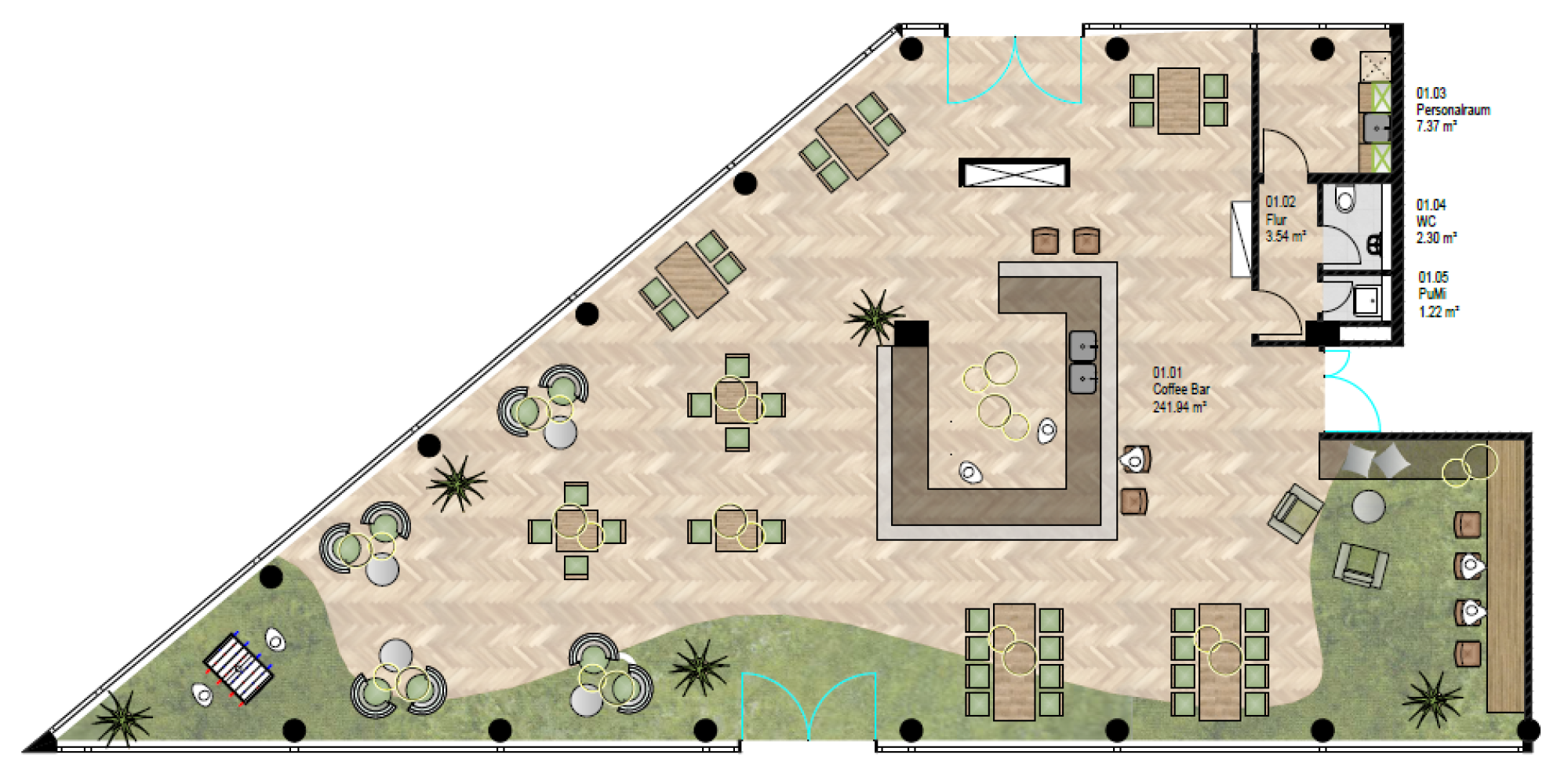 Dank der hervorragenden Anbindung an den öffentlichen Nahverkehr sowie der Nähe zu Einkaufsmöglichkeiten, Gastronomie und vielfältigen Freizeitangeboten profitieren Nutzer und Bewohner gleichermaßen von der zentralen, lebendigen Lage. Gleichzeitig sorgen die Innenbereiche für Rückzug und Komfort.