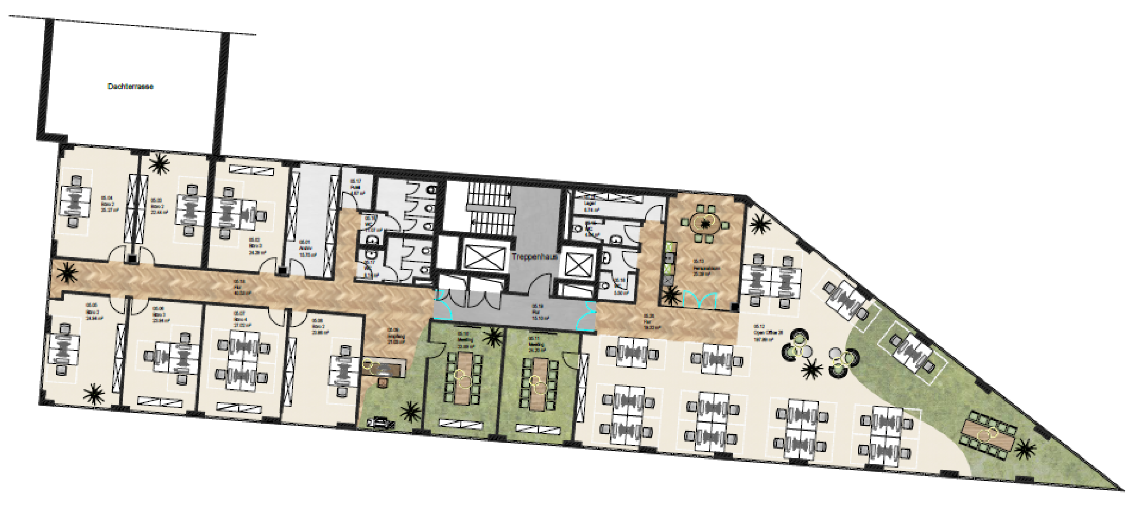 Der Mietpreis liegt zwischen 18,00 und 19,00 €/m² und richtet sich nach der Länge der Vertragslaufzeit, Lage im Objekt und der Ausstattung wie zum Beispiel Kühlung der Fläche im Objekt.