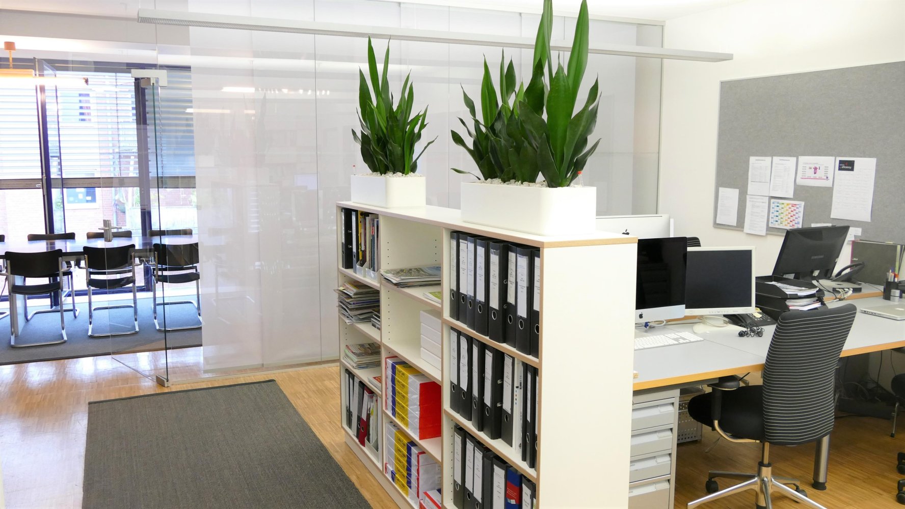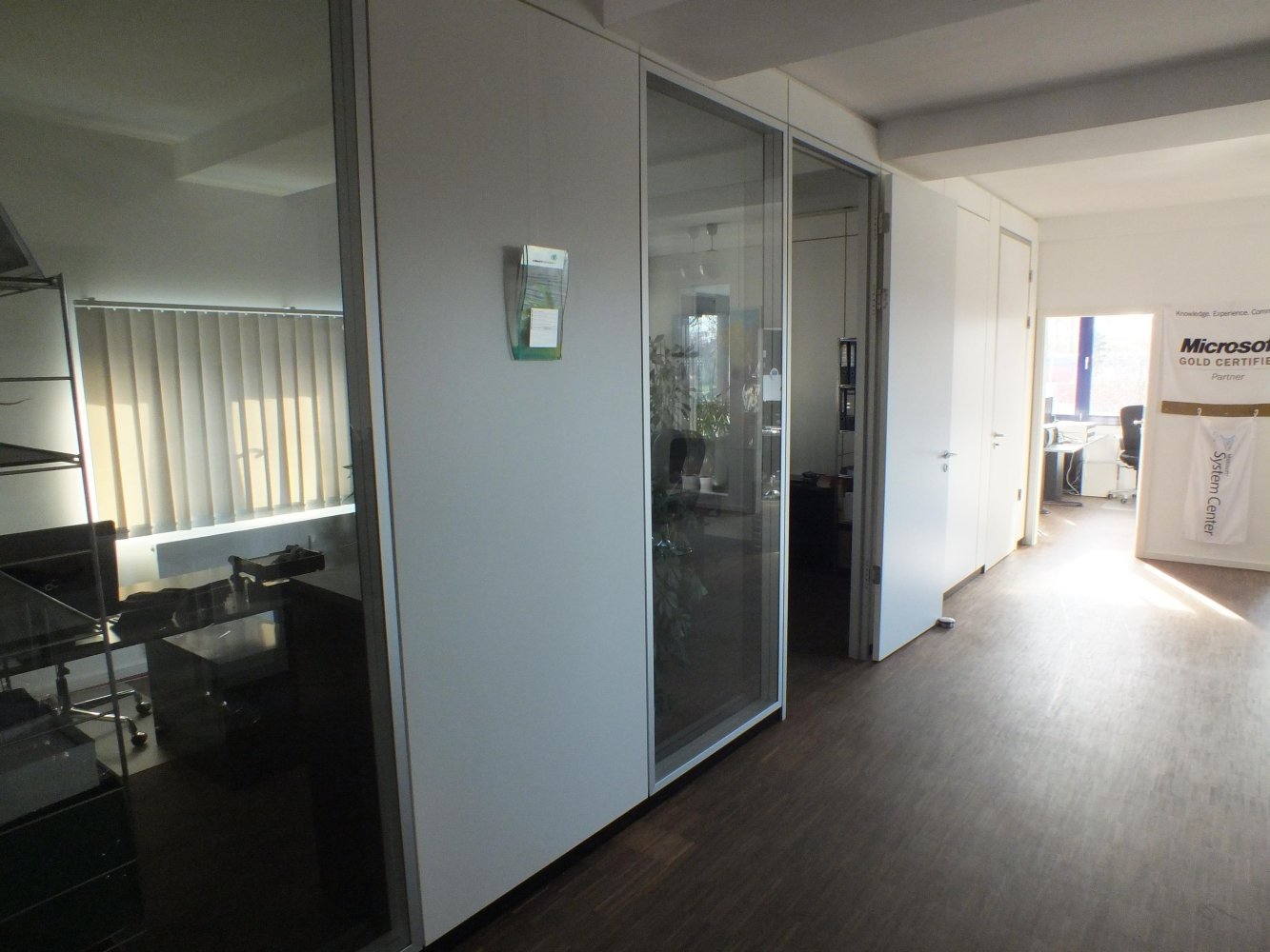 Die Räumlichkeiten der Büroflächen sind großzügig gestaltet und bieten ausreichend Platz für verschiedene Arbeitsbereiche. Helle Fenster sorgen für eine freundliche Atmosphäre und viel Tageslicht. Die Böden sind mit hochwertigen Parkettböden ausgelegt, was ein angenehmes Arbeitsklima schafft. Mehrere separate Bürozimmer und Besprechungsräume bieten genügend Platz für Teams und Meetings.