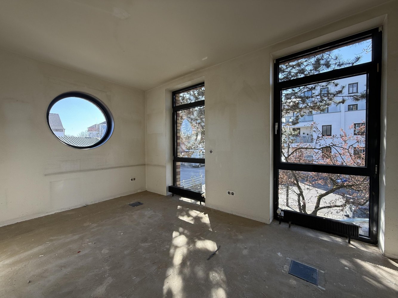 Diese attraktive Bürofläche überzeugt durch eine gelungene Kombination aus moderner Ausstattung und angenehmer Arbeitsatmosphäre. Der hochwertige Designboden in Holzoptik, eine Deckenhöhe von ca. 2,70 m sowie großzügige Fensterflächen schaffen helle und einladende Räumlichkeiten.